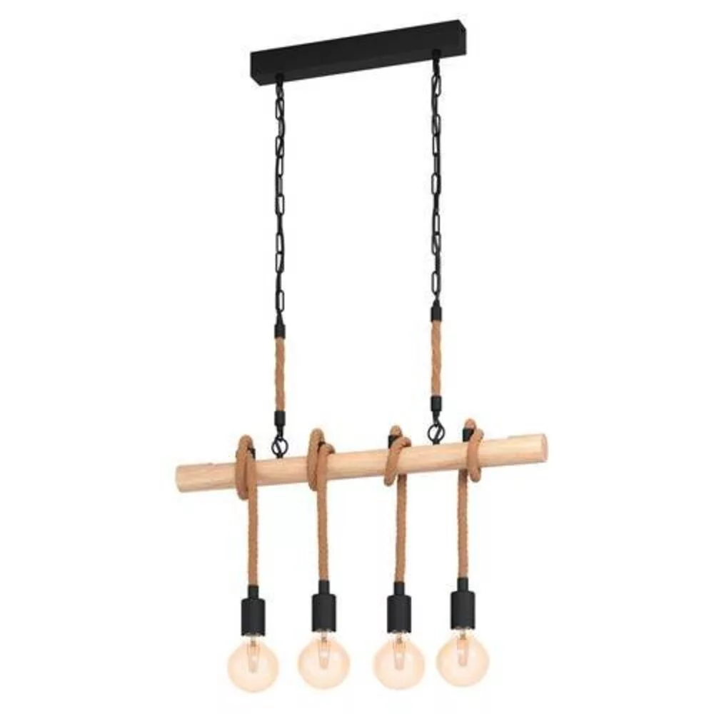 The YOUNGSTOWN pendant lamp is a rustic-style lighting fixture that perfectly fits vintage and industrial trends with its unique appearance. It is made from spring wood and metal, and comes with two chains and four black lamp holders that can be adjusted with hemp rope. The height of the lamp is easily adjustable by winding the cables, making it adaptable to various spaces, whether it's for the kitchen, living room, or above the dining table. The product features an E27 socket, but the light source is not included. The combination of elegant design and natural materials provides a modern look for any room.