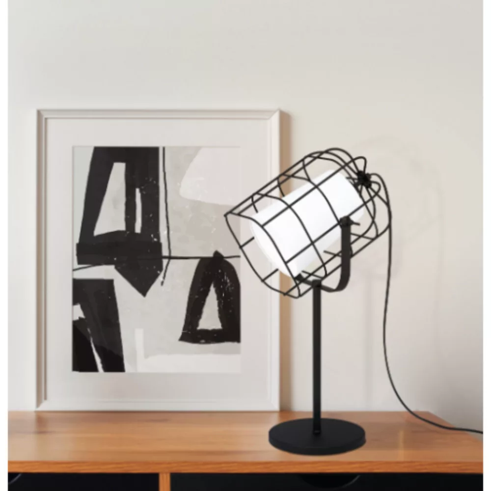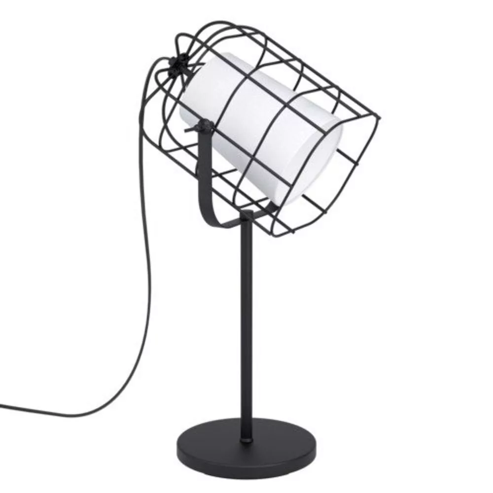 The BITTAMS table lamp is a stylish and vintage-looking lamp featuring a black wire cage and a white textile shade, with a black metal base. Its loft-chic design makes it a perfect complement to any indoor space, such as the living room, bedroom, or dining room. The lamp can be easily switched on and off via the in-line switch, allowing for simple lighting adjustments. The product requires an E27 light source, which is not included.