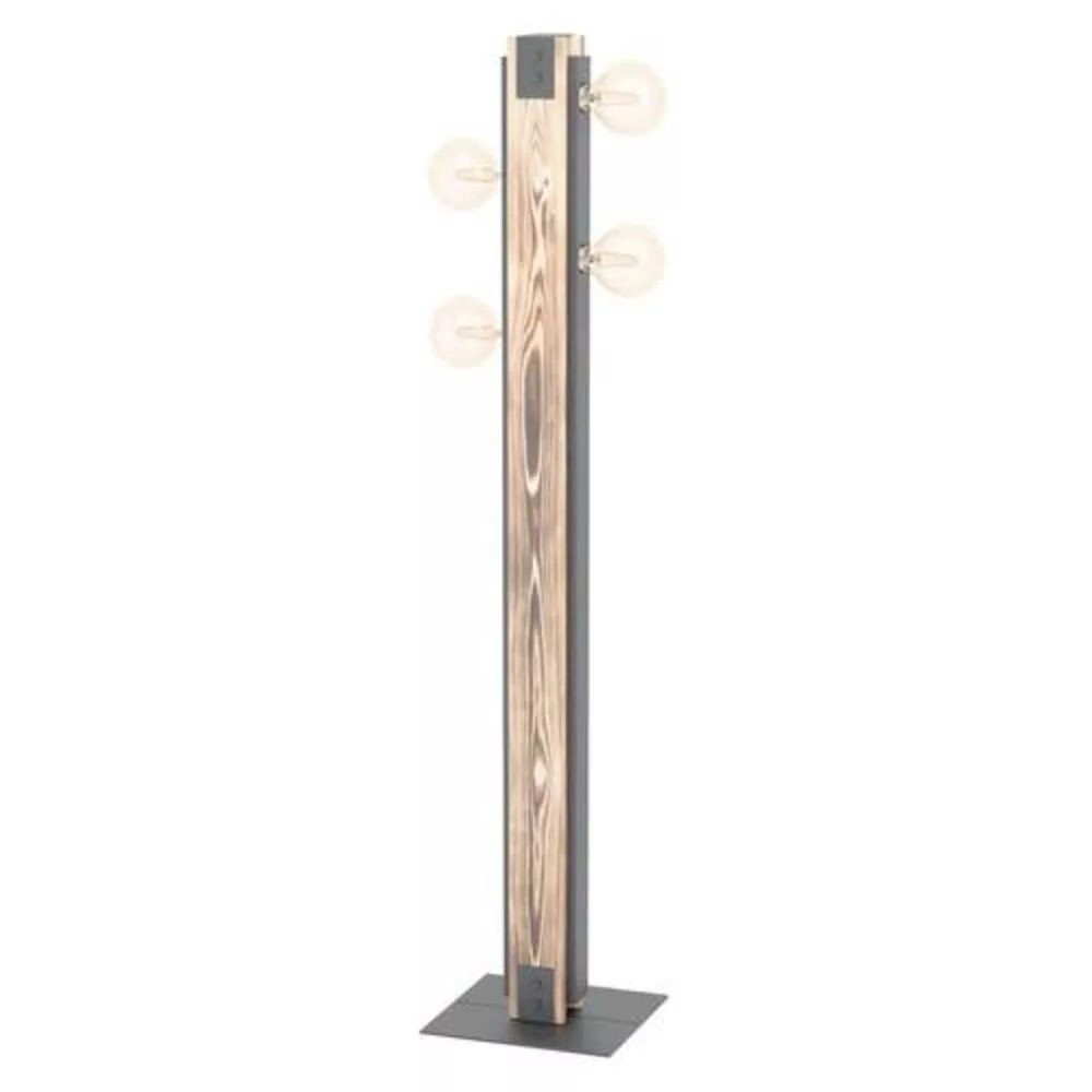 The LAYHAM floor lamp is made of black metal with burnt wood side decoration and features four light sockets. The product can be easily turned on and off thanks to the inline foot switch. This lamp perfectly fits vintage and industrial styles, providing a unique and eye-catching element to any space, whether it's a bedroom, living room, or dining room. The bulbs shown in the picture are not included with the product. The lamp's E27 sockets require E27 type light sources, with a maximum power of 4 x 60W.