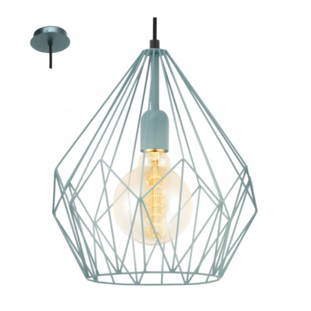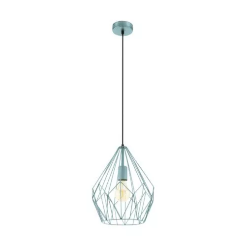 The CARLTON pendant lamp features a mint-colored, diamond-shaped lattice body that creates dazzling plays of light and shadow when the lighting is turned on. This pendant lamp perfectly complements modern vintage-style interiors and looks great in any room, whether it's in the kitchen, living room, children's room, or above the dining table. The product requires 1 piece of E27 light source, which is not included. It brings the spirit of the 1950s into your home with its colorful, shiny wire lamps.