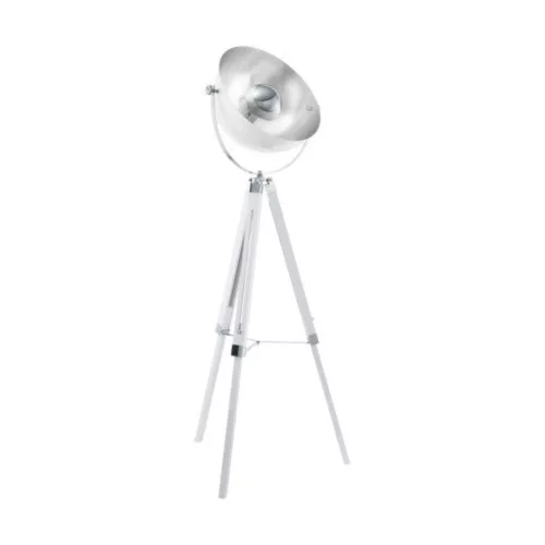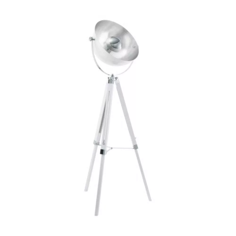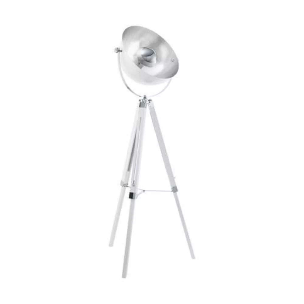 The COVALEDA floor lamp features an adjustable height tripod base made of white wood, and is equipped with a large, round shade. The rotating shade has a white steel surface with a silver inner coating. In the center of the shade is a semi-spherical black metal panel that provides pleasant, indirect lighting. The lamp can be easily turned on and off using the cord switch. Whether in the bedroom, living room, or dining room, this floor lamp creates the desired ambiance in any space. The product does not include a light source.