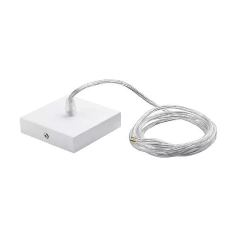 The SALOBRENA 1 cable extension is 2 meters long, featuring a transparent cable and a square white metal ceiling cover. This extension is designed for the SALOBRENA 1 product family of LED panels and is compatible with the following products: 96151, 96152, 96153, and 96154. The cable suspension from the SALOBRENA 1 product family (product number: 61355) can also be combined with it. The product does not include a light source.