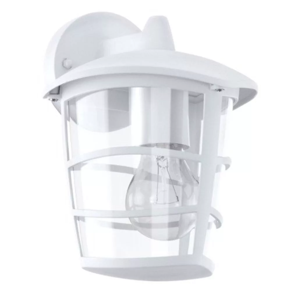 The ALORIA outdoor wall lamp features a modern, pendant lantern design made of white cast aluminum with transparent plastic inserts. The design provides direct visibility of the light source. With an IP44 rating, the product is protected against drops and splashes, making it ideal for outdoor use. Its classic style beautifully complements outdoor spaces. The brushed metal light source shown in the picture is not included; the lamp requires an E27 light bulb, as it has an E27 socket.