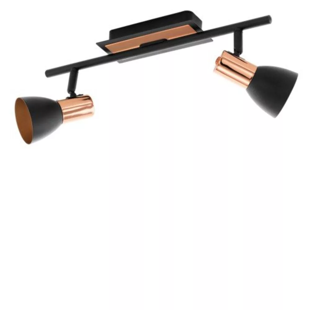 The BARNHAM LED ceiling lamp, with its modern and elegant appearance, is a perfect choice for indoor lighting. The black linear metal body and the copper decorative tray create a unique color combination, while the two black spotlights with copper ends serve as the perfect crown of the design. The adjustable shades, which are also copper-colored on the inside, emit a pleasant warm white light, allowing the lighting to be focused on desired areas. It is ideally suited for rooms such as the kitchen, living room, bedroom, or hallway. The product includes GU10 LED light sources.