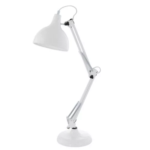 The BORGILLIO table lamp is made of white metal and features an adjustable head. The practical connectors of the body allow for instant height adjustment to perfectly illuminate a specific area of the room. The lamp can be easily turned on and off with the pull switch, making it a perfect fit for modern interiors. The light source is not included, and the lamp requires an E27 bulb with an E27 socket. The BORGILLIO series of table and floor lamps brings the trendy "industrial style" into your home.