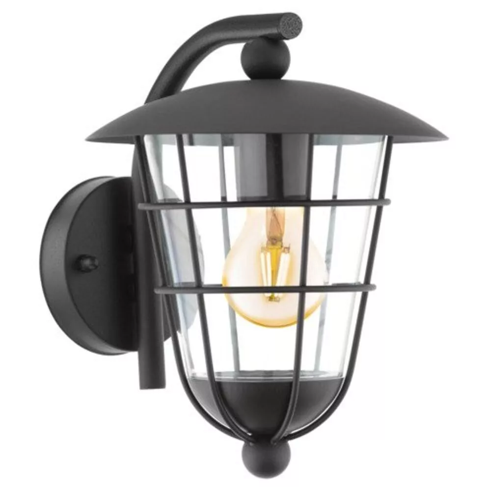 The PULFERO outdoor lamp is a stylish lantern-shaped lighting fixture with a galvanized steel surface in black and transparent plastic glazing. With an IP44 rating, it is resistant to splashing water, making it an ideal choice for outdoor use. Its classic appearance beautifully complements any exterior space. The product features an E27 socket, but the light source shown in the picture is not included. It can be used with a maximum 60 W E27 bulb.