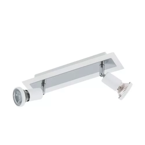 The SARRIA LED ceiling lamp features a sleek white metal body and two adjustable white metal spotlights. The chrome details perfectly complement the minimalist design. The adjustable spotlights allow you to direct the light to highlight specific areas, whether it's in the kitchen, living room, bedroom, or hallway. The product includes GU10 LED light sources that provide a pleasant warm white light. In addition to its elegant appearance, the SARRIA spotlight offers pleasant illumination for every part of your home.