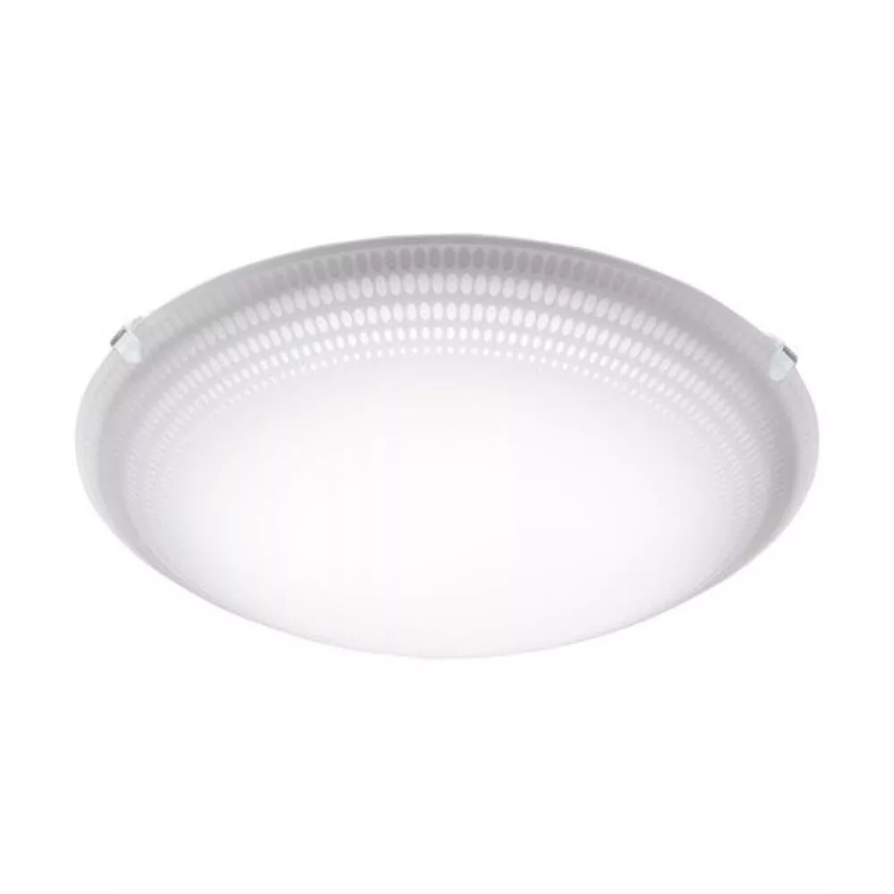 The MAGITTA 1 LED ceiling lamp features an elegant, round design with a curved glass cover in white, complemented by a white metal panel on the back. The transparent oval details along the edge of the glass cover enrich the lamp's design in an exciting way. The integrated LED light sources provide a pleasant, warm white light. With its classic appearance, this ceiling lamp harmoniously fits into any interior design style, whether in a kitchen, living room, bedroom, or hallway.