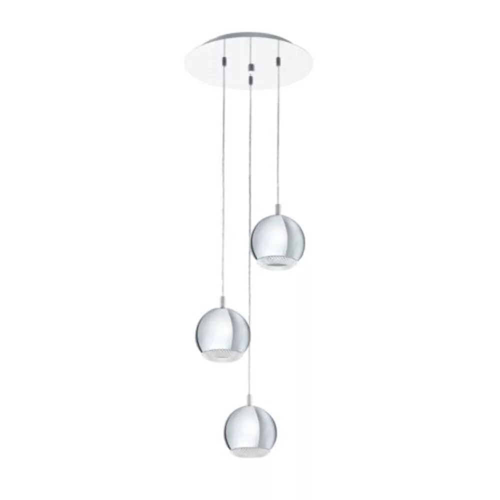 The CONESSA LED pendant lamp features three spherical metal shades that are chrome-colored and adorned with decorative crystal-like details made of transparent plastic. The crystal elements add brilliance to the lamp when illuminated. The product includes LED light sources that emit a pleasant warm white light. Its elegant design perfectly fits modern interiors, making it a stylish lighting solution for the living room or dining area. The product includes 3 GU10 LED light sources. The lamps in the CONESSA series are a true spectacle with their modern, spherical design, and a variety of pendant lamps are available to choose from.