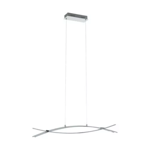 The NEVADO LED pendant lamp is made of chrome-colored aluminum and features three LED profiles. The three profiles hang in parallel, with the two outer ones gently curving downward, while the middle one curves upward. The built-in LEDs under the white plastic cover provide a pleasant, warm white light. The 90 cm long lamp perfectly fits minimalist and modern interiors, and its tasteful design offers a stunning visual appeal in your home, whether it be in the living room or above a long dining table. The product includes the light source, making it ready for immediate use. The NEVADO series lamps captivate with their narrow yet modern lighting elements, guaranteeing that your home will be trendy.