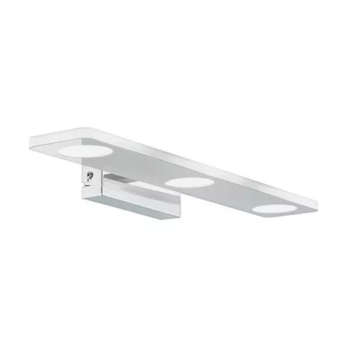 The CABUS LED mirror lamp is made of chrome-colored metal and features three round satin plastic light panels. Thanks to its IP44 protection, it is ideal for bathroom use, as it is resistant to splash water. The integrated LEDs provide a pleasant warm white light. The wall lamp is 45 cm long and fits modern interiors, creating elegant lighting above the mirror in the bathroom. The product includes the light source, so it can be used immediately. The CABUS series offers modern shapes and round light sources, providing pleasant illumination.