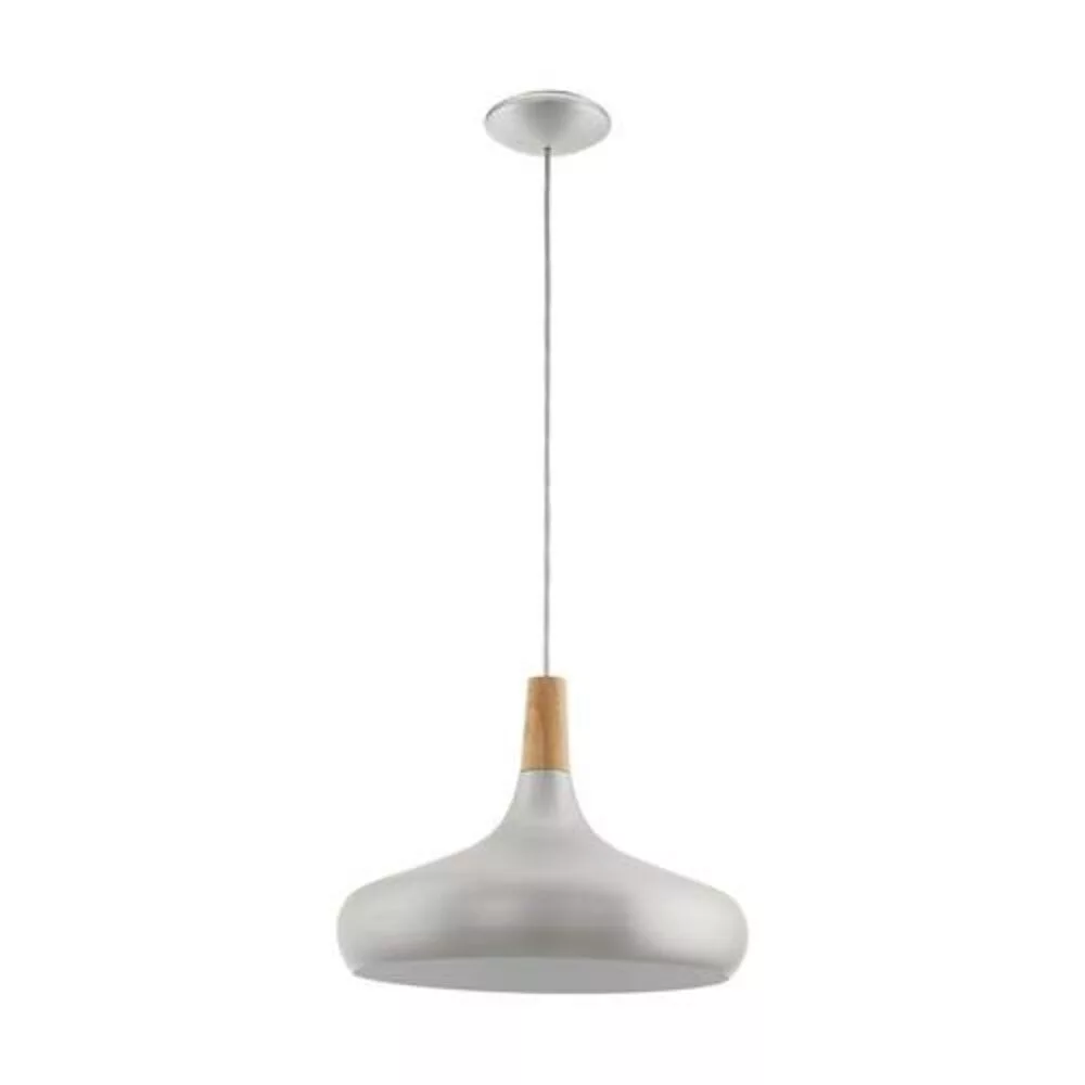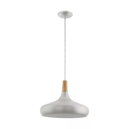 The SABINAR pendant light does not include a light source. This stylish lamp features a curved metal shade that shines in brushed silver and hangs with a white cable. The charm of the lamp is complemented by a brown wooden element that highlights the Scandinavian design. With a diameter of 40 cm, it is an ideal choice for living room or dining room lighting. The product has an E27 socket and requires a maximum 60W bulb. The SABINAR product family is available in various sizes and shapes, combining steel and wood to create a stunning effect.