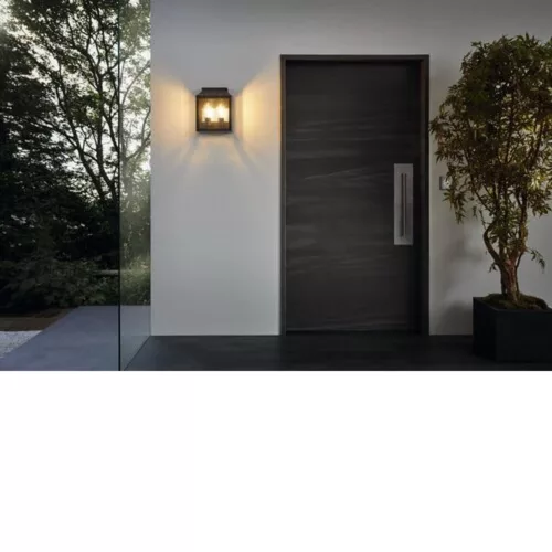 The SONCINO outdoor wall lamp brings a stylish appearance to modern outdoor areas. The black aluminum alloy frame and transparent glass panels provide a direct view of the light sources. The lamp has an IP44 rating, which protects against splashing water, making it ideal for outdoor use. The product does not include the filament bulbs shown in the picture; it features an E27 socket, which requires E27 bulbs. The vintage style of SONCINO lamps creates a pleasant atmosphere in outdoor environments.