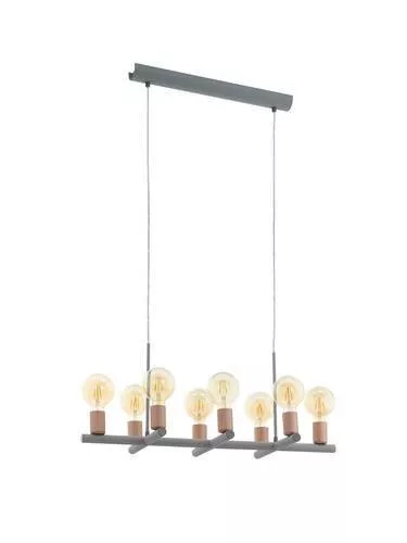 This pendant luminaire of the ADRI 2 series is made of steel and coated in the colour combination of grey and rose gold. It needs eight E27-illuminant to shine.