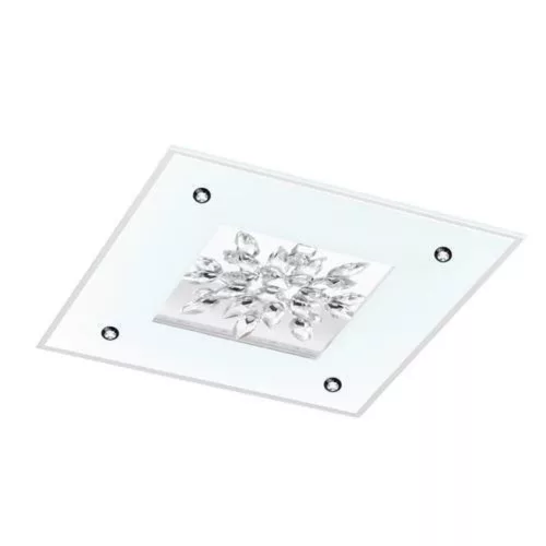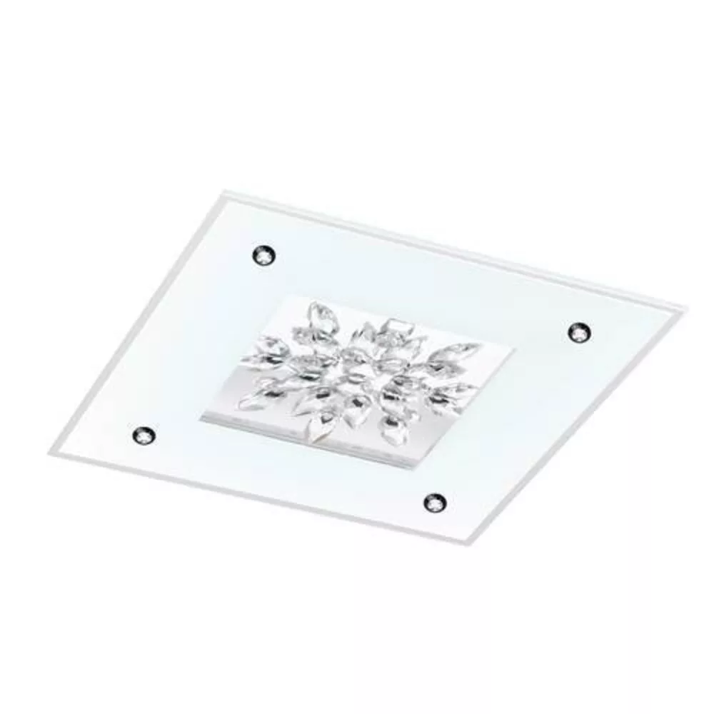 The BENALUA 1 ceiling lamp, with its elegant style and modern design, is an ideal choice for any indoor space. The lamp is made of white steel, frosted glass, reflective surfaces, and crystal, greatly contributing to the room's lighting and aesthetics. Its four LED light sources emit a warm white light and can be pleasantly dimmed, allowing for the desired atmosphere to be created. The product includes the light sources, making it ready for immediate use. With an IP20 protection rating and a 5-year warranty, it ensures long-term reliability. The lamp's dimensions are 470 mm x 470 mm x 75 mm, and it weighs 6.74 kg.