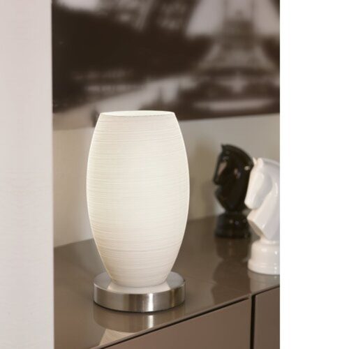 The BATISTA 3 table lamp, with its modern and discreet design, fits seamlessly into any interior space. The matte nickel metal base and the white shade made using a wiping technique create an elegant harmony. The in-line switch allows for easy on and off operation. The lamp requires an E27 socket, but the light source is not included. It is an ideal choice for a windowsill, nightstand, or side table, providing friendly lighting in your home. The BATISTA 3 product family stands out with its versatility and discreet design, making it suitable for any style of home.