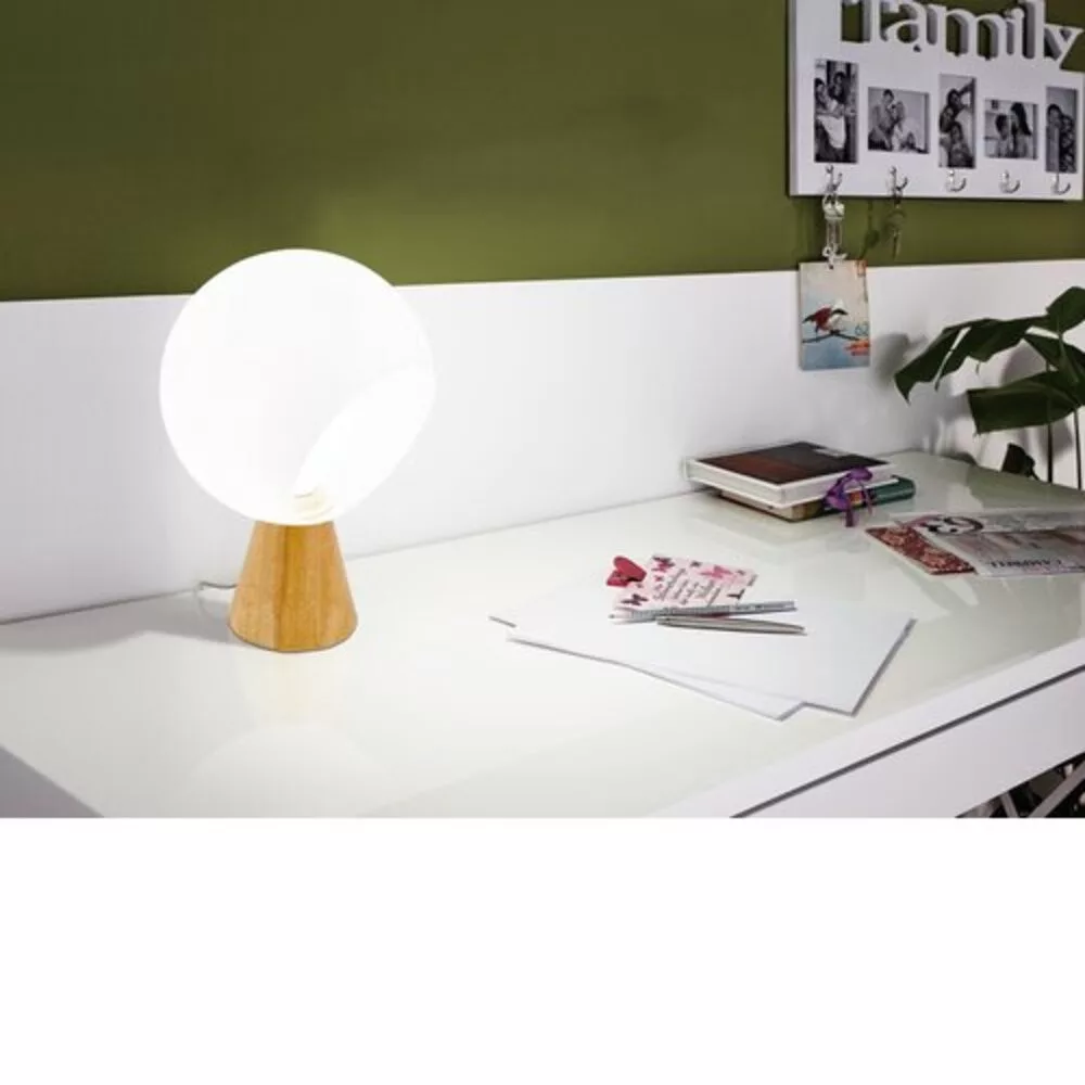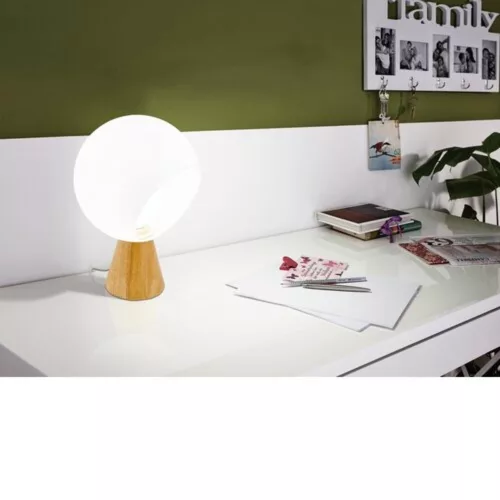 The MAMBLAS table lamp features an elegant oak-colored, oak-based, funnel-shaped lampshade paired with a globe-shaped white cover. The circular cutout of the shade provides a direct view of the bulb inside. This classic table lamp harmonizes with almost any modern interior design style and can be easily turned on and off via the cord switch. The light source is not included with the product. The E27 socket lamp is designed for 1x60W power and is compatible with various E27 bulbs. The MAMBLAS product line boasts an impressive combination of round white design and brown wood material, adding a special atmosphere to your home.