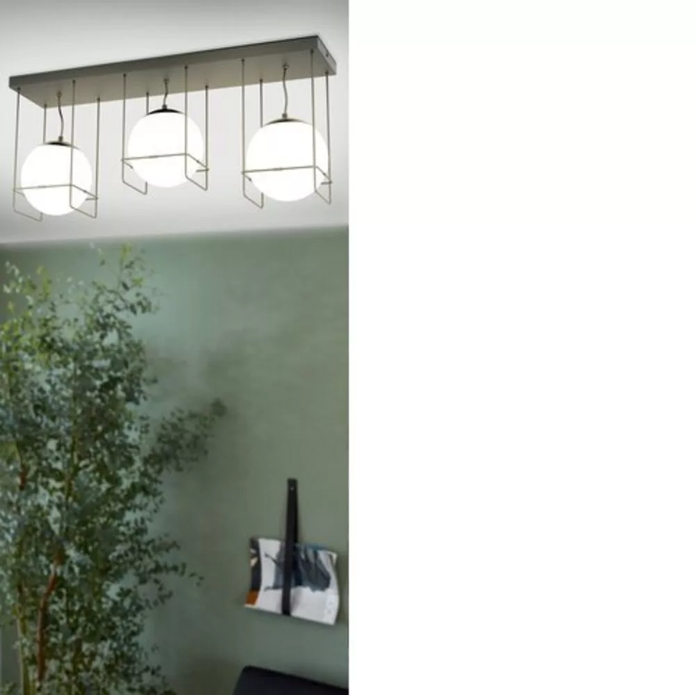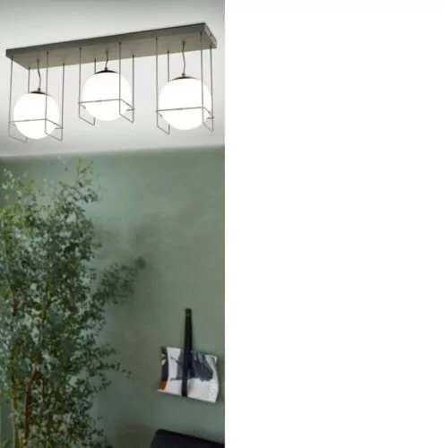 The VERSUOLA ceiling lamp is crafted in an elegant black design, featuring three black wire frames. Inside the frames are three white opal glass spheres that perfectly complement the lamp's unique appearance. The modern design fits seamlessly into contemporary interiors, creating stunning lighting for any room, making it an ideal choice for the living room or bedroom. The light source is not included. The product has an E27 socket, so it requires E27 bulbs.