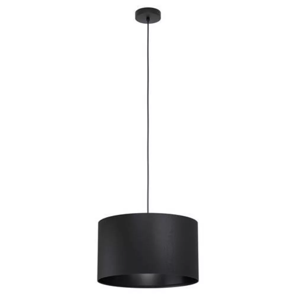 The MASERLO 1 pendant lamp, with its elegant design, is the perfect complement to any modern or minimalist interior. The round black textile shade and black metal holder harmoniously align with each other, providing a pleasant and cozy light in the living room or over the dining table. The product requires an E27 light source, which is not included in the package. Its maximum power is 1x40W, allowing it to be used with any E27 light source. The lamp has a cable length of 840 mm, an IP20 protection rating, and features a switchless type. The lamp is an ideal choice for those interested in stylish and functional lighting.