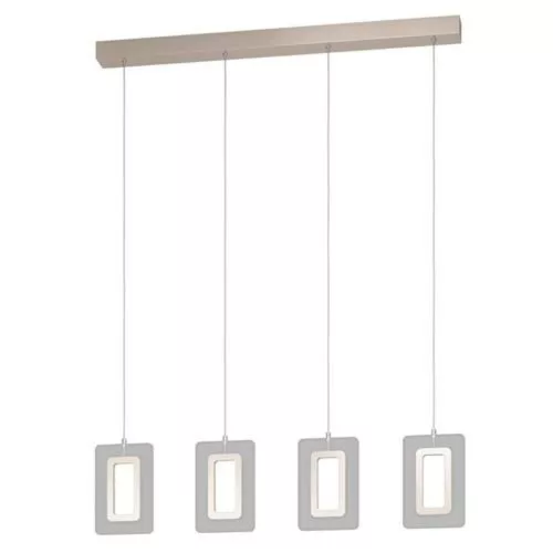 The ENALURI LED pendant lamp features four flat acrylic elements surrounded by matte nickel metal. The integrated LEDs emit a pleasant warm white light. The minimalist pendant lamp perfectly fits modern interiors due to the matte nickel ceiling canopy, and its classic design makes it ideal for any space, whether it be above a living room or a long dining table. The light source is included with the product.