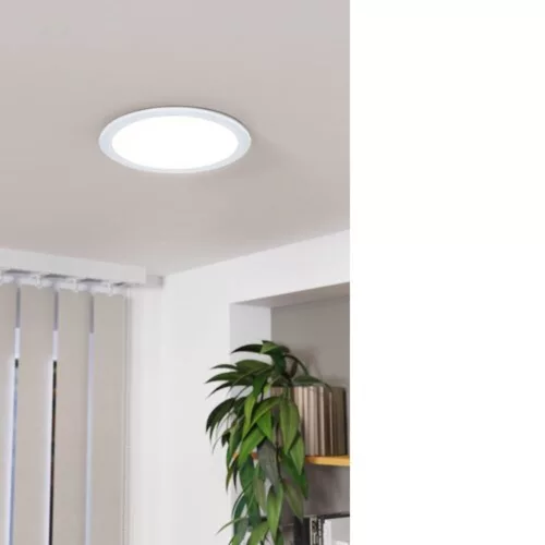 The FUEVA 5 recessed LED light is made with an elegant white metal housing, having a diameter of 216 mm and a height of only 26 mm. It is an ideal solution for any living space, such as kitchens, hallways, storage rooms, or offices. The advantage of the product is that it can be installed in insulating material, as the LEDs of the lamp are equipped with a white diffuser, providing neutral white light. A cutout with a diameter of 205 mm is required for installation. The classic design of the FUEVA 5 recessed spotlight and its neutral white light source are perfect for areas that require good lighting. The light source is included with the product.