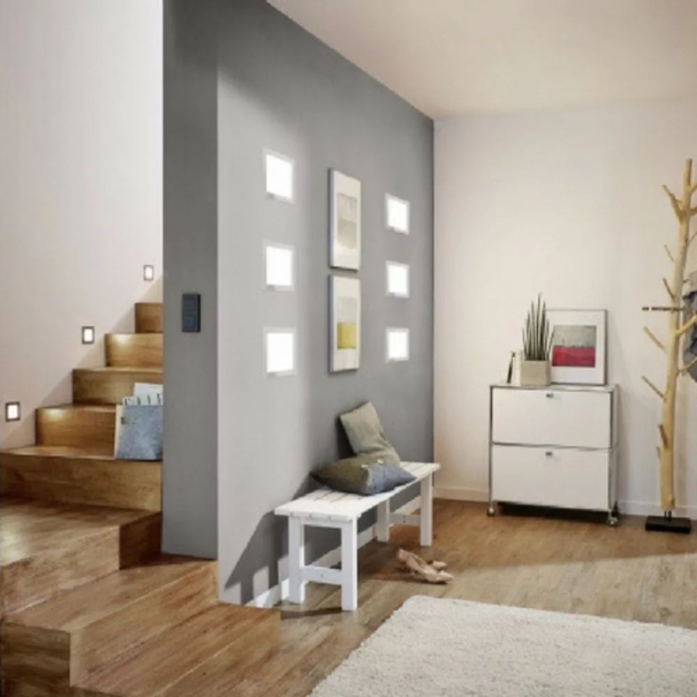 The FUEVA 5 recessed LED lamp is an elegant solution for indoor lighting. The matte nickel metal casing and the 117 mm square shape with rounded corners give this lamp a modern look, allowing it to blend seamlessly into almost any living space. With a height of 26 mm, the lamp can also be installed in insulating material. The built-in LEDs are covered by a white diffuser, emitting neutral white light. A cutout with a diameter of 105 mm is required for installation. The classic design of the lamp and the neutral white light source make it ideal for kitchens, hallways, storage areas, and offices where adequate lighting is needed. The light source is included with the product and provides a maximum output of 12 W. You can enjoy reliable and energy-efficient lighting guaranteed for 5 years.