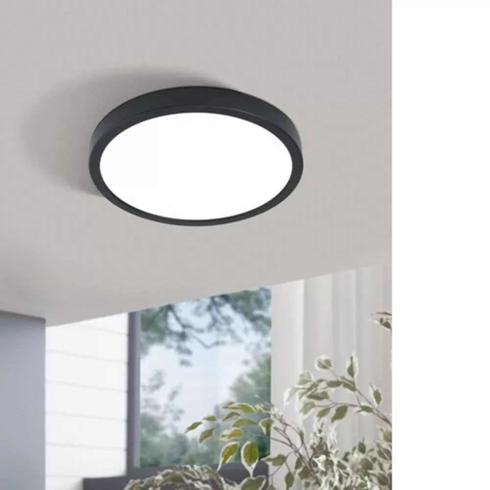 The FUEVA 5 LED lamp has an external black metal casing and a height of 28 mm, making it easy to integrate into almost any interior design trend. The integrated LEDs are concealed by a white light diffuser, providing neutral white light. Thanks to its slim profile, the ceiling lamp can also be placed on the wall. The high-quality lamp housing has no visible screws, and the special ceiling mounting element simplifies installation. Its classic design and neutral white task light make it a perfect choice for spaces requiring good lighting, such as the kitchen, hallway, pantry, or office. The product includes a light source, which is LED type, with a maximum power of 20.5 W.