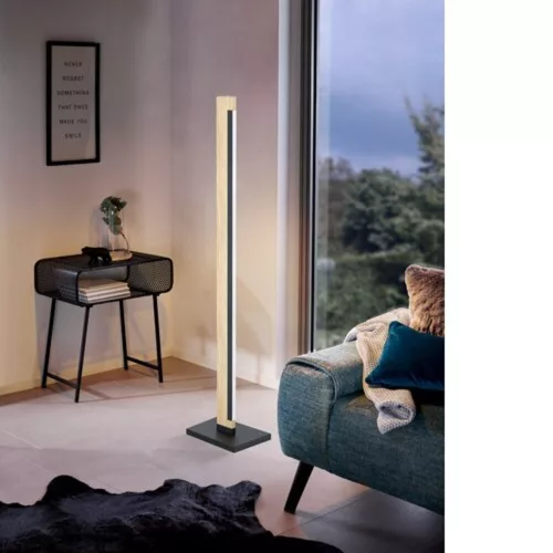 The CAMACHO LED floor lamp features a modern, elegant design with a black metal frame and oak-style wooden accents, as well as a black LED profile. The integrated LED components provide a pleasant, warm white light. The lamp can be turned on and off using the 'touch me' zone located on the lamp head, and its brightness can be easily adjusted. This floor lamp fits into any interior design style and becomes a striking feature in any space, whether it be a living room, bedroom, or dining room. The light source is included with the product, so it can be used immediately.