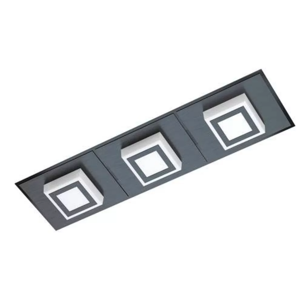 The MASIANO 1 LED wall-ceiling lamp features a modern design, making it an ideal choice for any indoor space. Its matte black metal finish, combined with decorative brushed aluminum details, lends an elegant appearance. Thanks to the three square satin plastic shades, the built-in LED light sources provide a pleasant warm white light. Its slim design allows the lamp to be easily used as a wall fixture as well. Perfect for kitchens, living rooms, bedrooms, hallways, dining rooms, or offices. The product includes the light source, so it is ready for immediate use.