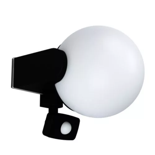 The RUBIO outdoor LED wall lamp features a black U-shaped aluminum alloy casing and a white plastic light globe. The product is equipped with a built-in motion sensor that automatically turns on, illuminating low-visibility areas and deterring unwanted visitors. The lamp also has a twilight sensor that monitors ambient light conditions, ensuring that the light only turns on when needed. With its IP44 rating, the product is suitable for outdoor use, and its classic design fits any modern exterior, making it ideal for house entrances, terraces, or balconies. The light source is not included; the product has an E27 socket and requires an E27 light source.