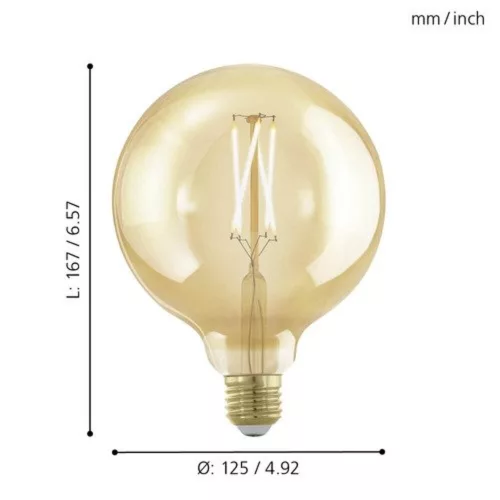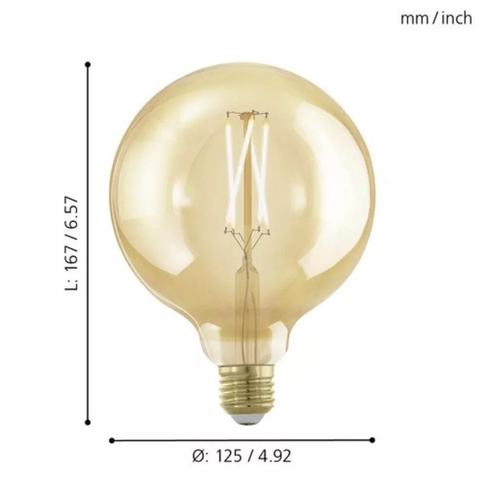 The EGLO Vintage gold E27 LED filament light source is an elegant and stylish solution for your lighting needs. The amber-colored glass cover creates a pleasant atmosphere in any part of your home. With a power of 4 watts, it provides 320 lumens of brightness, emitting a golden, warm light that is ideal for cozy lighting in living spaces. The LED light source is included in the product, so there is no need to purchase it separately. The extra warm white light and vintage style are attractive features of the E27 LED filament bulb, making it a eye-catching element in your home. The product has an expected lifespan of 25,000 hours and is designed for 15,000 switching cycles, providing a long-term and economical solution. The EGLO product comes with a 5-year warranty, ensuring reliable use.