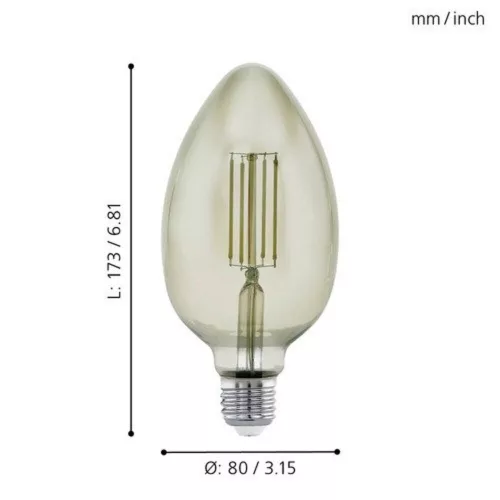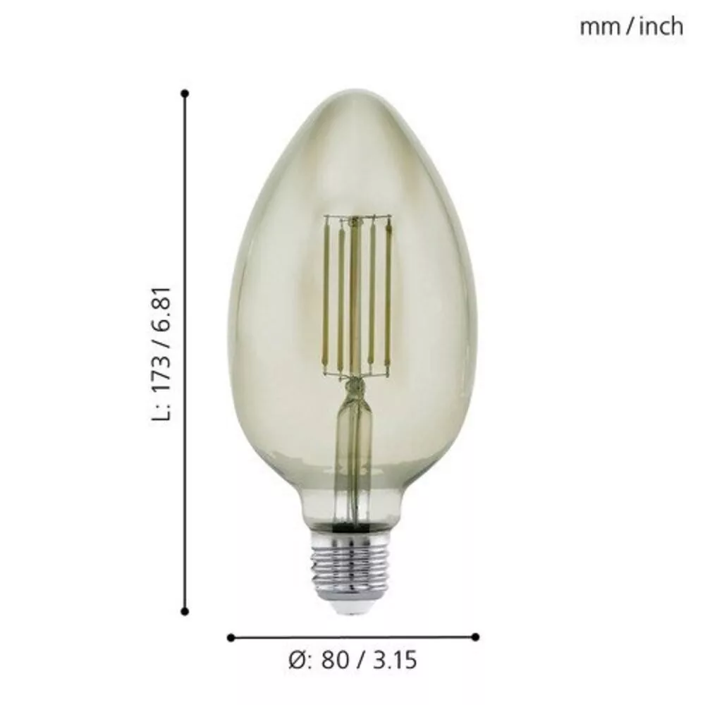 The EGLO Vintage special smoky LED E27 light source is the perfect combination of modern and vintage lighting styles. With a warm white color temperature of 3000 K, it provides a pleasant, homey light, while the glass cover gives an elegant appearance to the space. The product features an E27 socket and a maximum power of 4 W, which is equivalent to approximately a 30 W traditional bulb.
