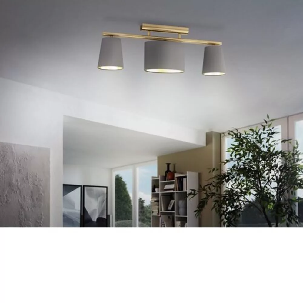 The ALMEIDA 2 ceiling lamp, with its elegant appearance, can be a perfect complement to any modern interior. The brushed brass metal base and the elongated metal holder harmoniously unite with the three cappuccino-colored textile shades, which feature a beautiful play of light due to their copper inner surface. The lamp bears the stylistic traits of the 1960s, making it an ideal choice for the living room, bedroom, dining area, or hallway. The package does not include a light source; we recommend using E14 socket lamps, with a maximum power of 3x40W. Is the light source included: No.