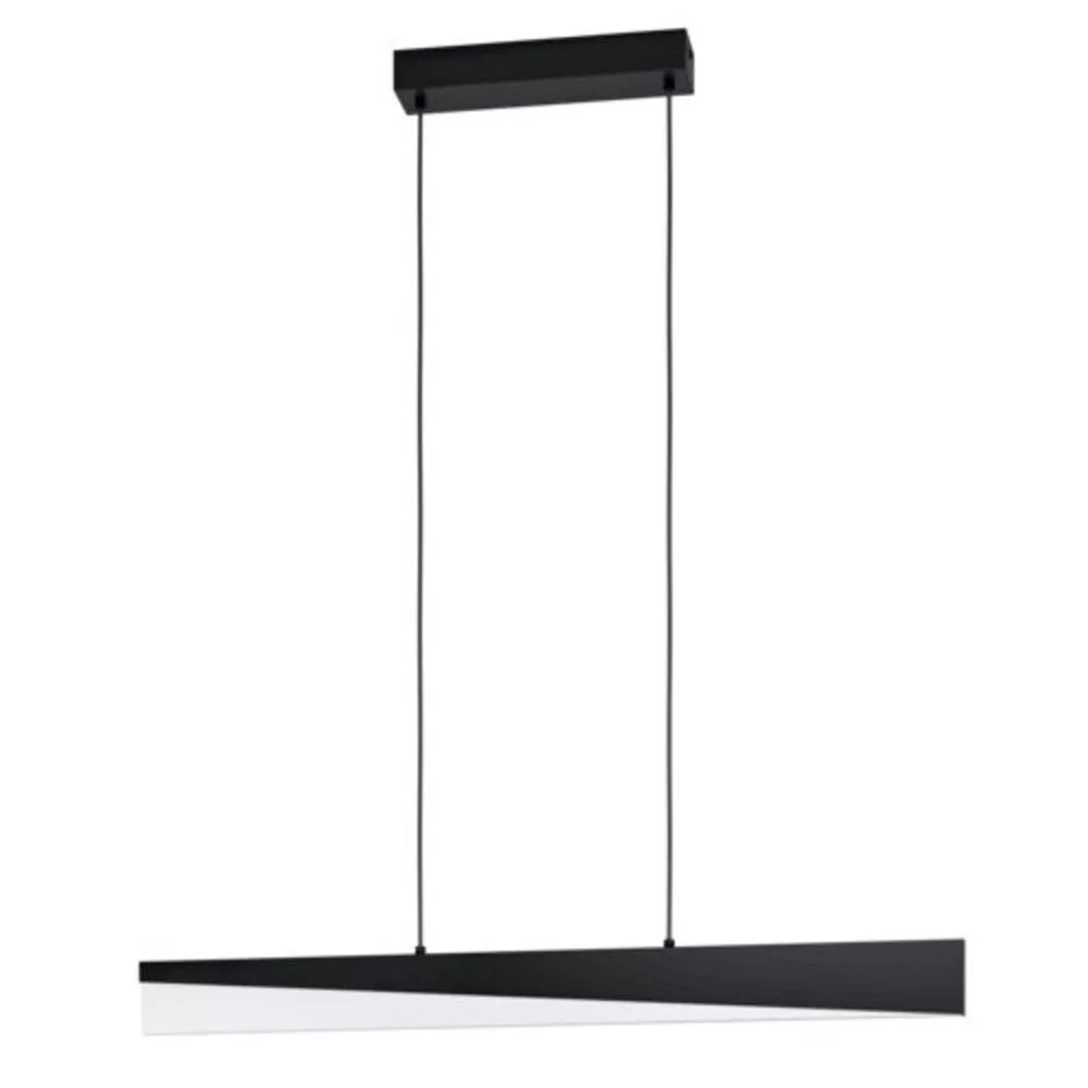 The ISIDRO LED pendant lamp is a modern and stylish choice for illuminating indoor spaces. Its black metal LED profile, combined with a frosted acrylic cover, gives it a unique diagonal design that highlights the lamp's clean, linear appearance. The integrated LEDs emit a pleasant warm white light and can be adjusted with a wall-mounted rotary dimmer. This modern pendant harmonizes with almost any interior design style, making it an ideal choice for a living room or above a long dining table.