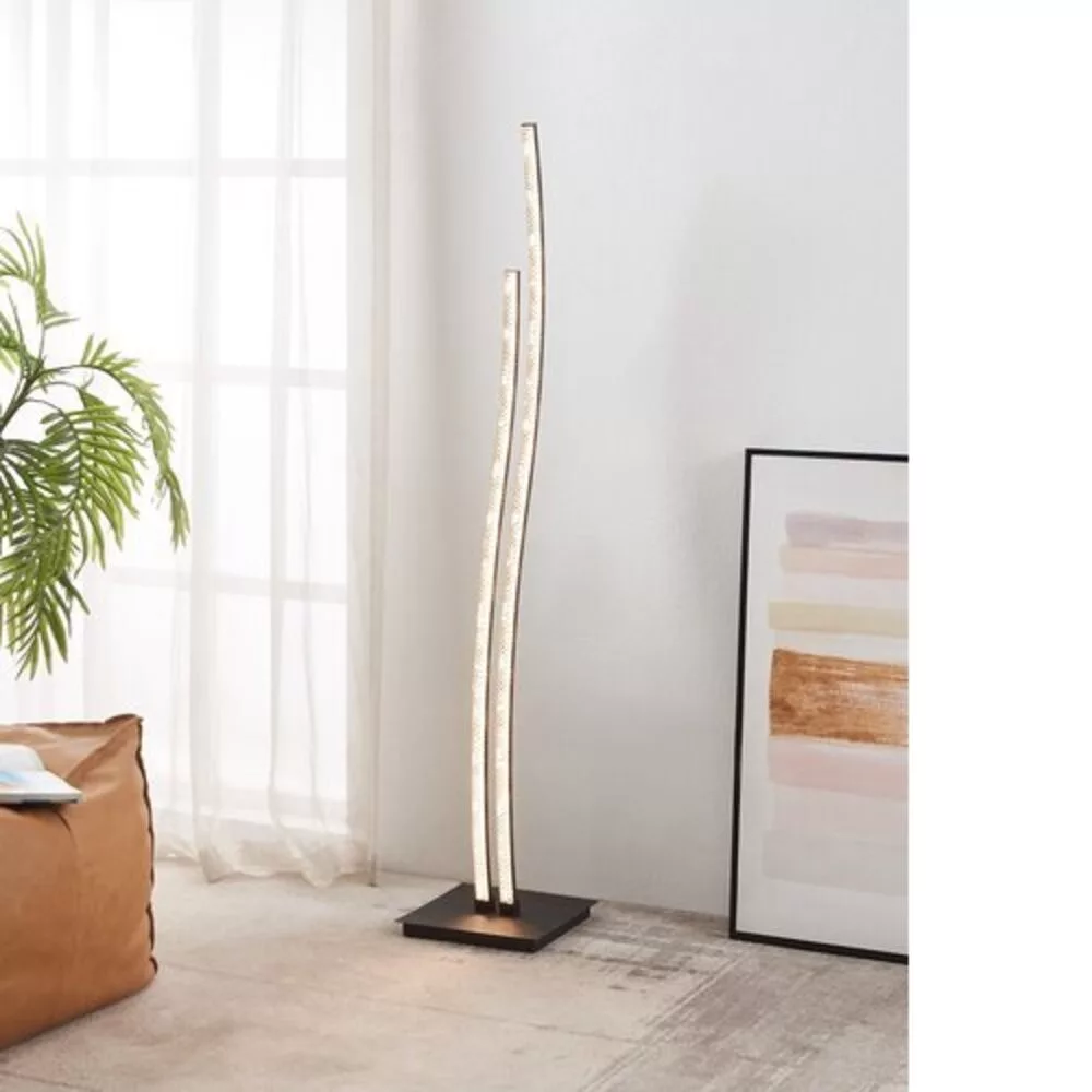 The LEJIAS LED floor lamp features an elegant black metal base and gracefully curved LED profiles, giving a unique appearance to modern interiors. The profiles' decorative plastic crystal surface provides a special sparkle when the lamp is turned on. The integrated LEDs emit a pleasant warm white light, creating the perfect atmosphere in the living room, bedroom, or dining room. The lamp can be easily switched on and off thanks to the in-line foot switch. Due to its minimalist design and elegant look, it is an ideal choice for modern spaces. It is important to note that the light source is included with the product, so there is no need to purchase it separately.