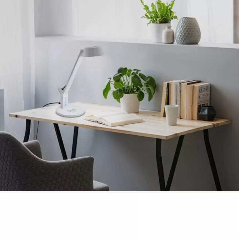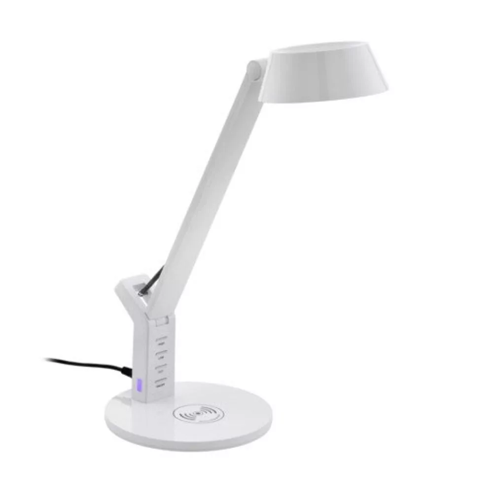 The CABALES LED desk lamp is made of white plastic and features an adjustable neck and head. The integrated LEDs provide a pleasant light that can be adjusted as needed. With the switches located on the base of the lamp, you can easily turn the lighting on and off, adjust the brightness, and change the color temperature between warm white, neutral white, and cool white. A practical feature of the lamp is the QI charger placed in the base, allowing for easy charging of your mobile phone by simply placing it on the charging zone. This classic desk lamp perfectly fits modern interiors and provides optimal lighting for any room, whether it's a nightstand, living room, or desk. The light source is included with the product.