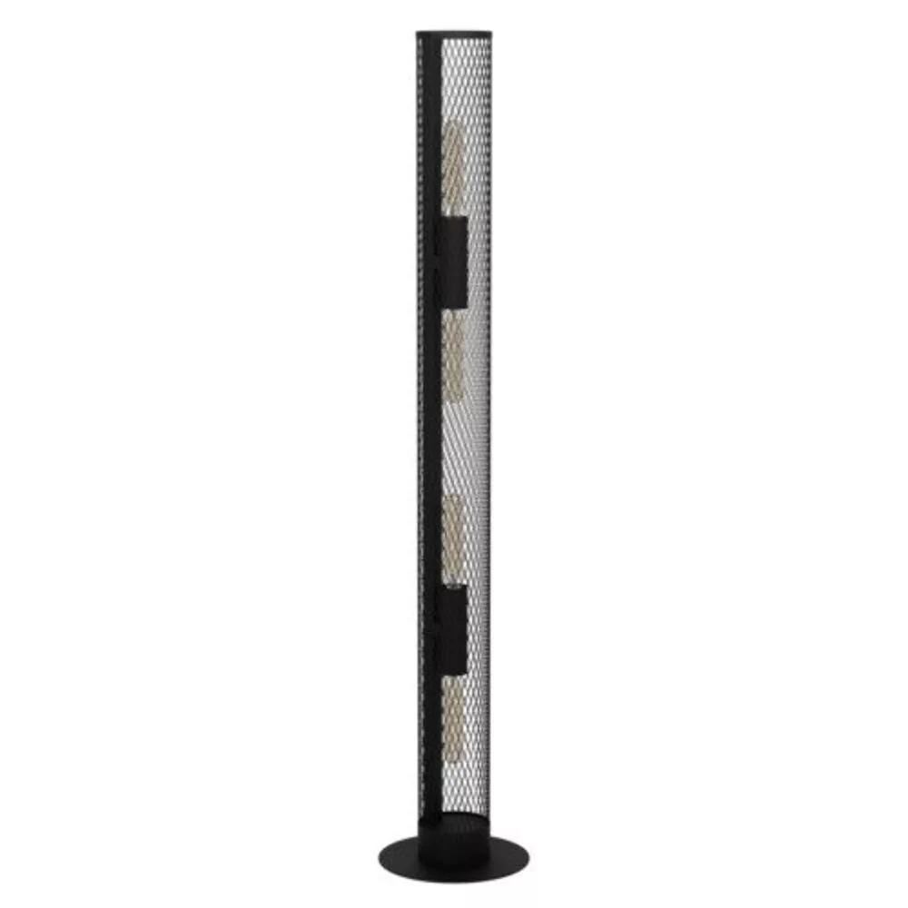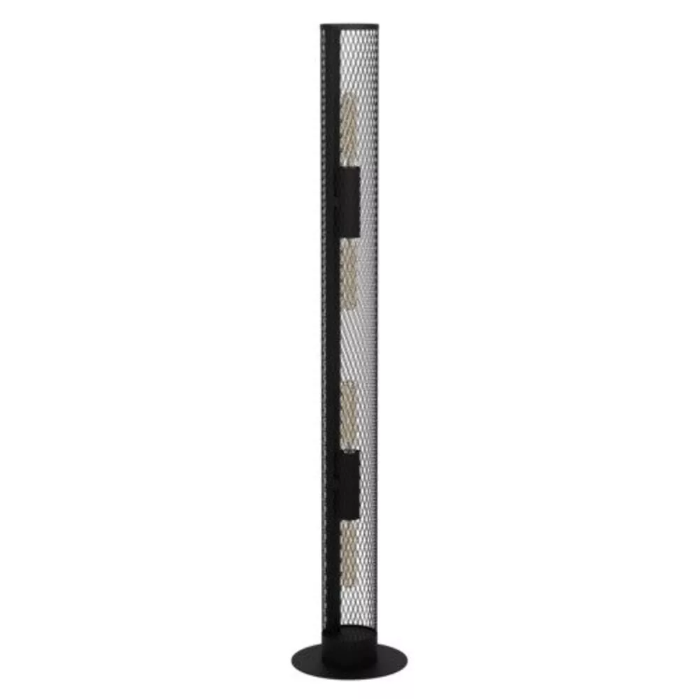 The REDCLIFFE floor lamp, with its stunning industrial design and long black extended metal mesh cylinders, is the perfect addition to any modern interior. The unique interplay of light and shadow created by the mesh instantly comes to life when the lamp is turned on. The in-line foot switch allows for easy use, making it an ideal choice for the bedroom, living room, or dining area, where it helps create the right atmosphere in any setting. It is important to note that the brushed bulbs shown in the image are not included with the product. The lamp requires an E27 socket and E27 light sources, with a particular recommendation for the use of elongated shaped bulbs.
