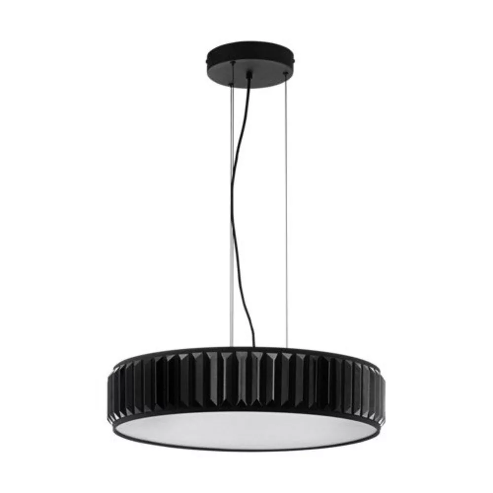 The FIRENZUOLA LED pendant light is part of the EGLO Access product family, featuring an elegant appearance with metal, wood, and plastic coverings, complemented by a black fabric shade adorned with shiny black plastic crystals. The shade hangs from a round black metal ceiling fixture with a black textile cable and discreet metal wires. The integrated LED units are positioned behind a white plastic diffuser, providing pleasant lighting available in three different color temperatures: warm white, neutral white, and cool white. The ceiling lamp can be controlled via remote control, offering brightness adjustment, night light, and a timer (automatic shut-off after 30 minutes), as well as two pre-set lighting modes. Additionally, using the remote, up to eight Access lamps can be controlled simultaneously, allowing for personalized lighting settings to be saved. The product fits elegantly into modern interiors, providing stylish lighting for living rooms, bedrooms, or dining areas. The light source is included with the product, and the lamp is dimmable.