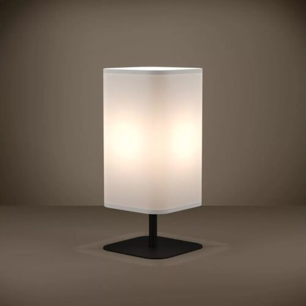 The GUERIMA table lamp features an elegant black metal base and a white textile shade, providing pleasant illumination on a bedside table, in the living room, or in a hallway with its minimalist lines. The lamp is easily operated with a cord switch. The product requires 1 E27 light source, which is not included.