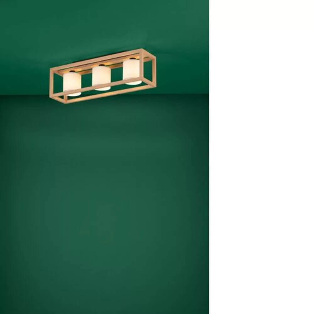 The GRANADOS ceiling lamp features a natural finish, rectangular beech wood frame and three white cylindrical textile shades. The product's natural appearance complements various interior design styles while providing pleasant lighting in any space, whether it be a bedroom, living room, or hallway. The light source is not included. The lamp has E27 sockets and requires E27 bulbs.