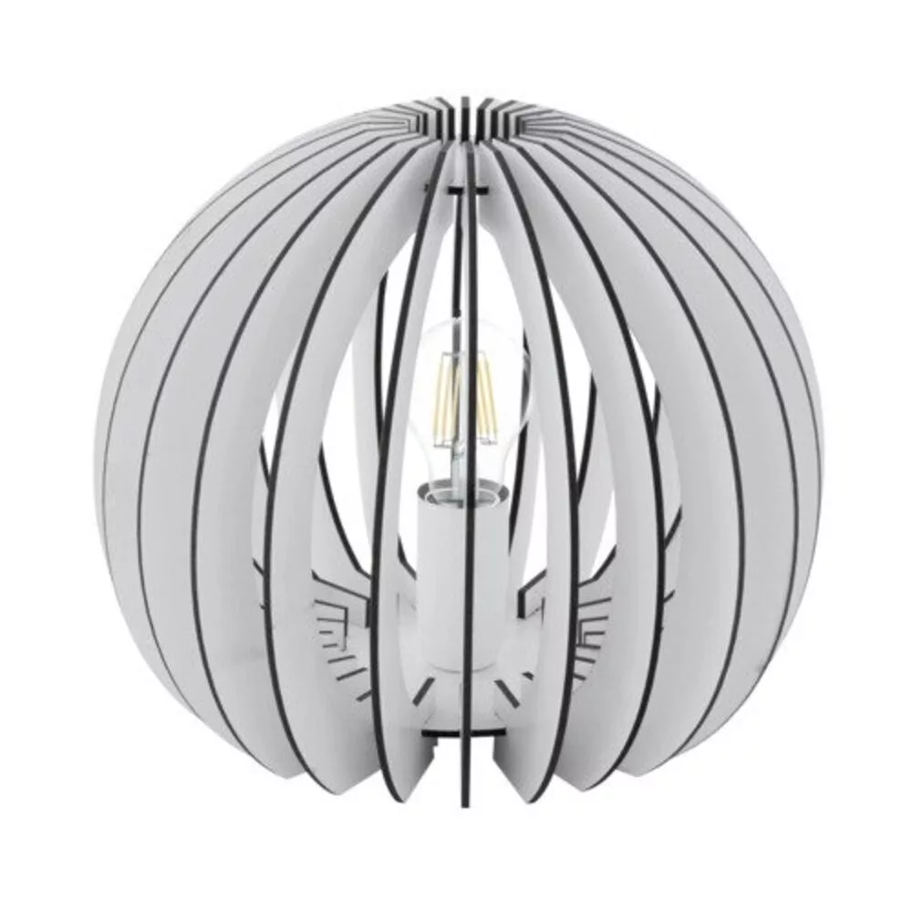 The COSSANO series table lamp is made of white wood and white plastic and is operated with a cord switch. The lamp has protective insulation and requires an E27 socket for lighting. The product does not include a light source. The special wooden slats of the COSSANO series are perfectly trendy, adding energy to your home. The lamps are available in various shapes, sizes, and colors.