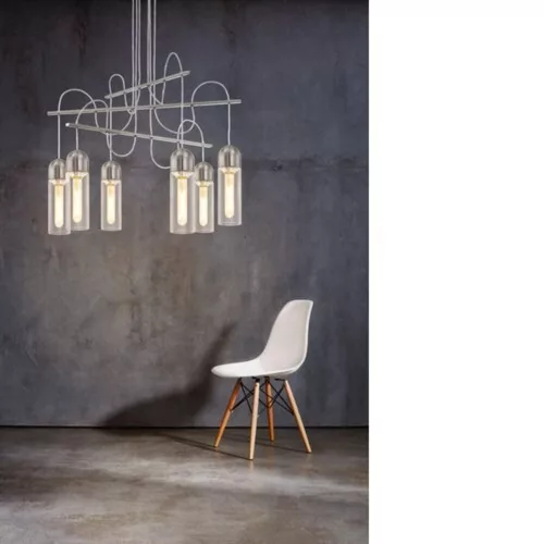 The ZACHARO series pendant lamp is made of elegant matte nickel steel and transparent glass. The six E27 LED bulbs provide warm white light, perfectly contributing to a pleasant home atmosphere. The striking design of the lighting fixture catches the eye and gives a modern look to any interior. The light source is included with the product, making it ready for use immediately. The lamp's dimensions are 1500 mm in length and 700 mm in diameter, making it an ideal choice for spacious rooms. It is guaranteed to be a unique decoration for your home.