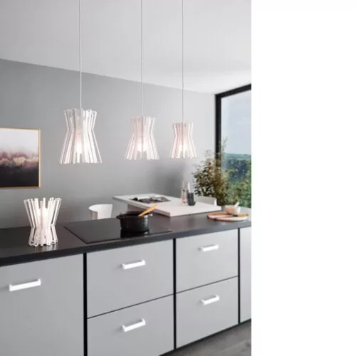 The LOCUBIN series pendant lamp is made of white steel, providing an elegant appearance for any interior space. The three E27 LED light sources ensure a pleasant light flow, making it an ideal choice for creating cozy lighting. The lamp's versatile design creates interesting light and shadow effects, making it a decorative piece in any room. It is important to note that the light source is not included with the product. The lamp has a maximum power of 3x40W and is compatible with E27 connections. It arrives without a cable and plug but can also be used with a compatible dimmer. With an IP20 rating, it is recommended for indoor use only.