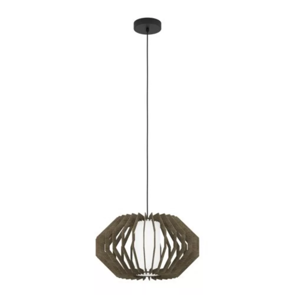 The EGLO pendant light belonging to the RUSTICARIA product family is an ideal choice for indoor lighting. The black steel casing and the brown, white glass shade give the lamp an elegant appearance. The E27 socket allows for the use of light sources with a power of up to 1x40W or 12W. The light source is not included, so you can choose according to your own needs. The lamp is dimmable and operates without a switch, with IP20 protection, making it perfect for indoor use. Product dimensions: height 1100 mm, diameter 450 mm. A two-year warranty ensures reliability.