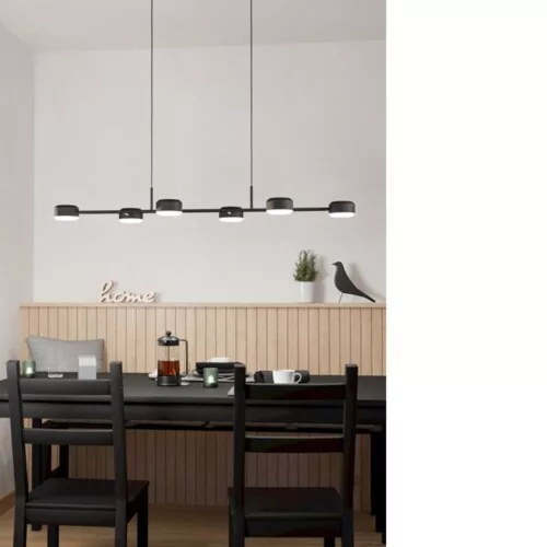 The Clavellina indoor lamp features a modern design that captures attention with its combination of a black steel casing and a white plastic shade. The lamp, measuring 1200 mm long, 400 mm wide, and 1100 mm high, delivers a total brightness of 4800 lumens at a color temperature of 3000 Kelvin, providing a pleasant and warm light for spaces. The product has six LED sockets, with the light source included. The lamp is dimmable, allowing you to adjust the brightness according to your needs. With an IP20 protection rating, it is an ideal choice for indoor use and comes with a 5-year warranty, ensuring the product's durability.
