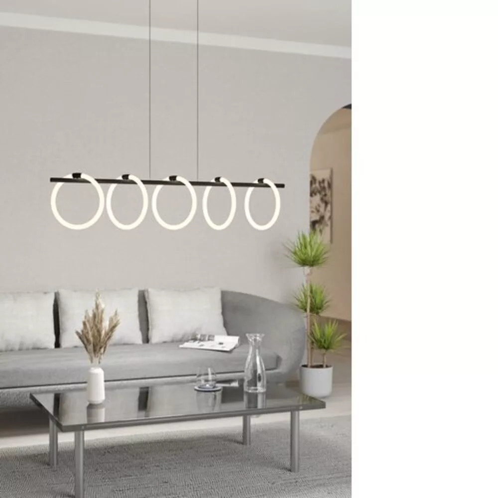 The EGLO LED ceiling lamp, with its elegant appearance and modern design, is an excellent choice for any home. The black steel casing and white plastic shade create a harmonious contrast while providing warm light with a color temperature of 3000 Kelvin. The product has a maximum power of 5x7W, ensuring a luminous flux of 7000 lumens, which is perfect for illuminating spacious rooms.