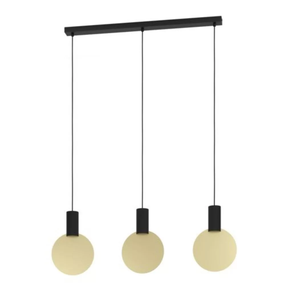 The EGLO SARONA indoor pendant brings modern elegance and style to your home. Its steel casing features a black and gold color combination, making it suitable for any interior. The lamp operates with a GU10 LED light source, with a maximum power of 3x4.5W, saving energy while providing pleasant light. The product includes the light source, so it can be used immediately. The lamp is dimmable and works only without the built-in switch. With an IP20 protection rating, it is suitable for indoor use. The product dimensions are: 910 mm long, 50 mm wide, and 1100 mm high. Its guaranteed quality is backed by a 2-year warranty. An ideal choice for stylish lighting.