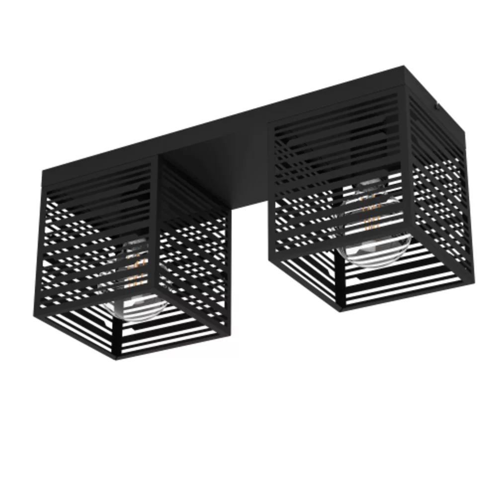 The PIEDRITAS ceiling lamp features a modern design with two square metal bodies that have long cutouts, creating a stunning play of light and shadows when the lamp is turned on. It fits perfectly in modern interiors and provides the right atmosphere in any room, whether it's the kitchen, living room, bedroom, or hallway. The bulbs shown in the picture are not included with the product. The product has E27 lamp holders and requires E27 light sources.