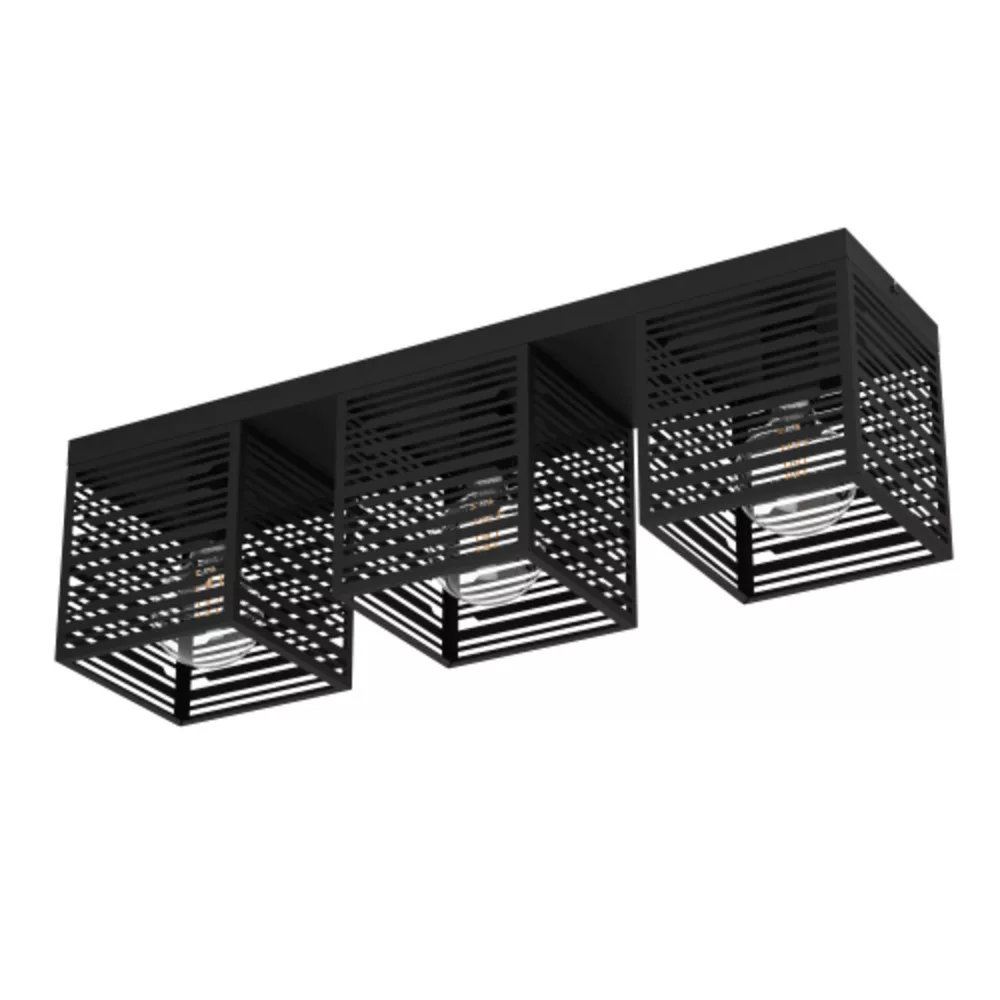 The PIEDRITAS ceiling lamp features a modern design with three square metal bodies, which are adorned with long, perforated details. This design creates a stunning interplay of light and shadow when the lamp is turned on. It is an ideal choice for the kitchen, living room, bedroom, or hallway, perfectly harmonizing with modern interiors and creating a pleasant atmosphere in any space. The product uses E27 sockets and requires E27 bulbs, which are not included in the package.