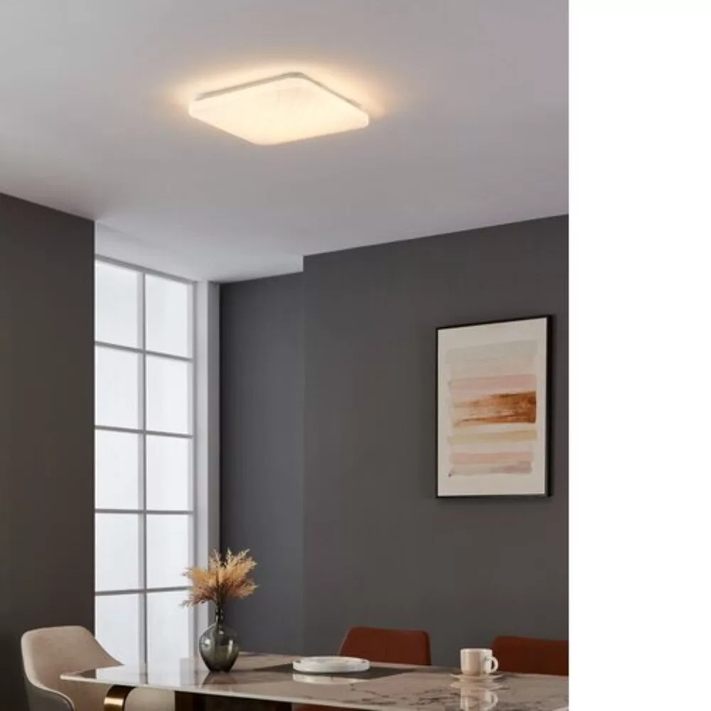 The EGLO ceiling lamp is an ideal choice for indoor lighting. The product features a white steel cover, while the plastic shade in silver and white adds an elegant appearance to the lamp. The lamp is equipped with a 3000 Kelvin color temperature LED light source, providing 2300 lumens of luminous flux, making it perfectly suitable for illuminating spaces.